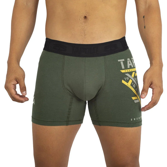 Nuestro Boxer Xarat está elaborado en base a Algodón para un mejor cuidado de la piel. Con elástico personalizado high density en la pretina y costuras internas flatsimmer para facilitar encaje y aumentar la comidad al emplear la prenda. Como todas las prendas Tapout, el Boxer Xarat cuenta con estampados en base a tintas ecológicas. Este modelo elogia los orígenes latinos del Team de MMA peruano: Raza Latina | Peruvian Core Team | Everyday We Fight