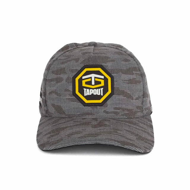 100% Drill Polyester sublimada. Gorra camuflada con manchas y detalle gris con efecto vintage de lavandería. Logotipo octogonal frontal con estampado en alta definición. Etiqueta transfer de marca y bandera tejida. Ajuste regulable posterior con Snap de PVC de dos hileras.